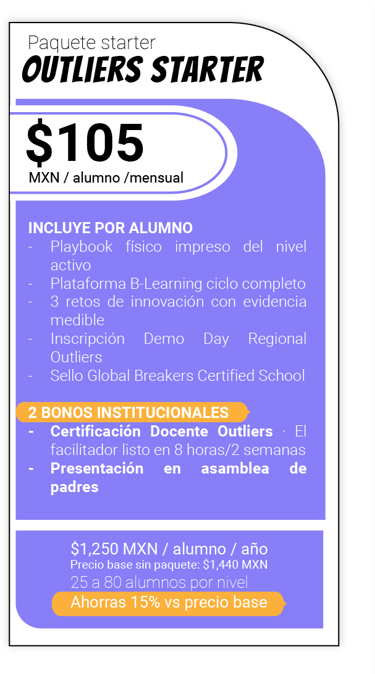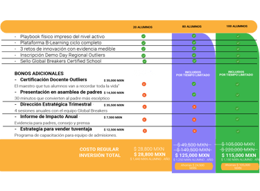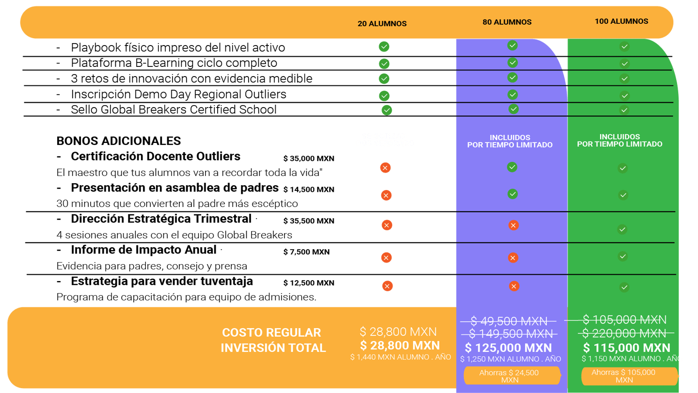 El precio por licencia baja conforme sube el volumen. Los bonos institucionales crecen conforme sube el paquete.