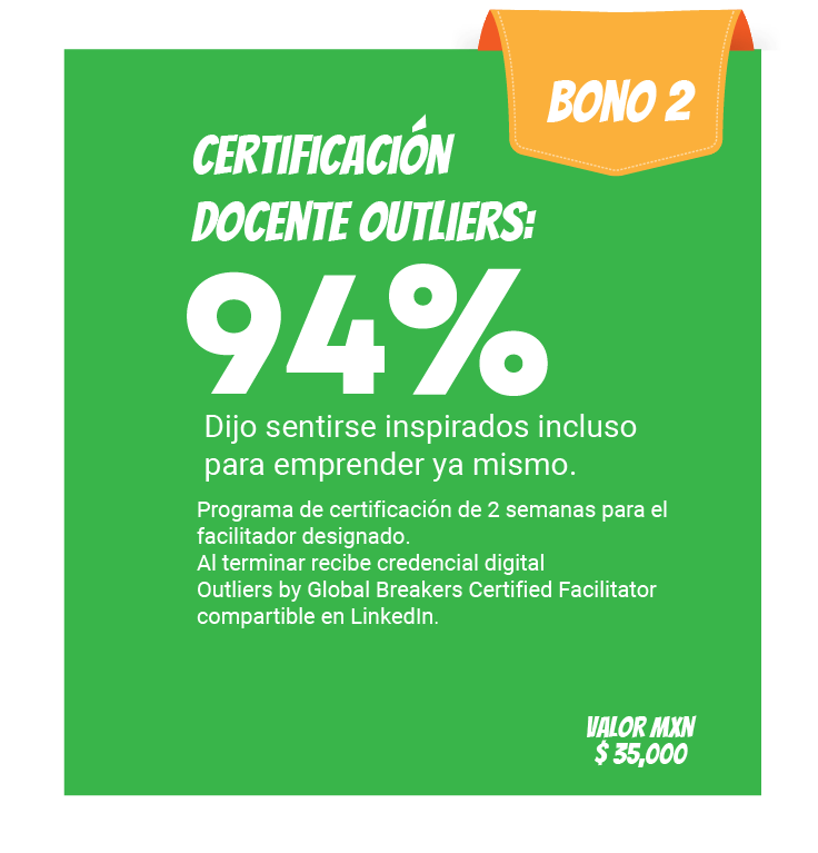 Si al finalizar el primer ciclo no puedes documentar al menos 3 proyectos de alumnos con evidencia real de validación, ingresos o impacto territorial, el siguiente ciclo lo facilitamos sin costo de licencia. Solo pagas los materiales.