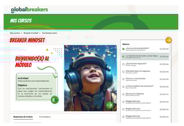 9 materias disponibles, playbooks, guías paso a paso, recursos gamificados y herramientas que facilitan la implementación efectiva del modelo Global Breakers en cualquier escuela.